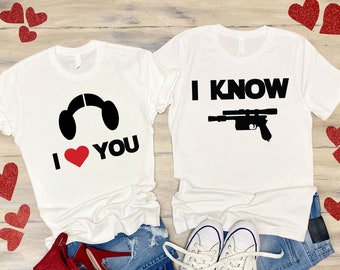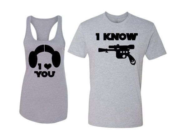 Available in a range of colours and styles for men, women, and everyone. 5 out of 5 stars (2,761) 2,761 reviews $ 18.00. Han solo and princess leia star wars disney couple shirts i love you i know her worshipfulness and the scruffy looking nerf herder step out in style with these perfect star wars geek couple shirts! $$$this is rated 1 out of 3 dollar signs. Princess leia & han solo harrison ford silhouettes.
